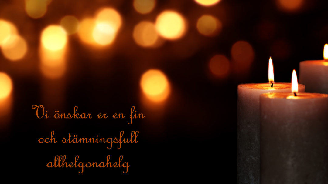 På fredag 31/10 håller vi kontoret öppet kl.8:30-13:00. Vi önskar er alla en fin allhelgonahelg.