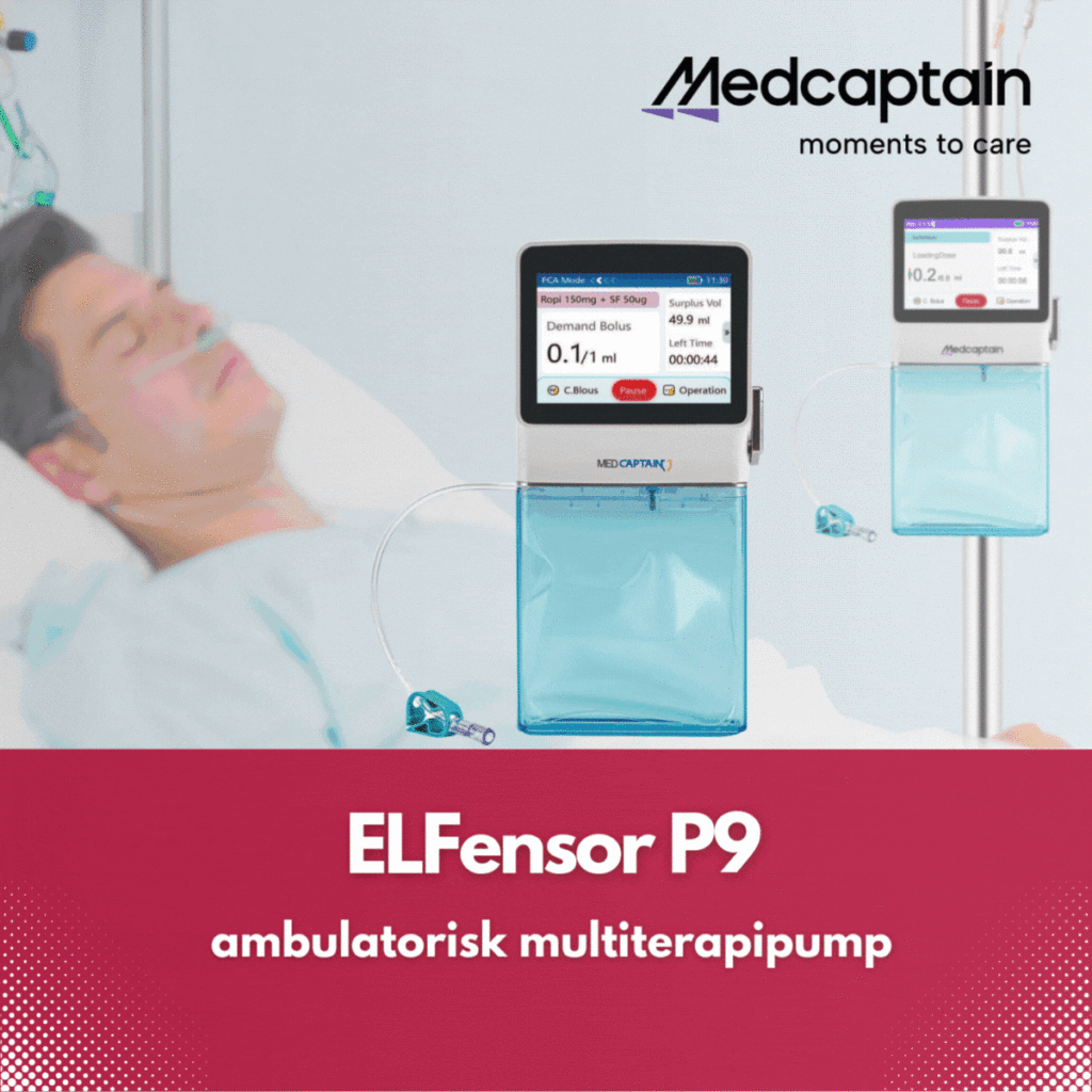 ELFensor P9 från Medcaptain är en avancerad ambulatorisk multiterapi-pump, utvecklad för säker administration av läkemedel/vätska, inom såväl sjukhusmiljö som hemsjukvård.